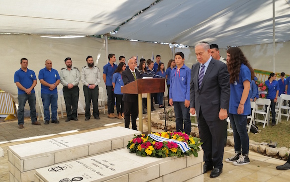 Биньямин Нетаниягу на церемонии перезахоронения супругов Паттерсон в кибуце Авихайль